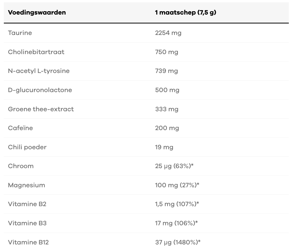 Daardoor ga je met deze pre workout booster geen tintelingen ervaren. Creatine is ook een supplement dat ontbreekt dat wordt meer gebruikt als opvul middel. Het is wel uniek dat beide supplementen ontbreken.